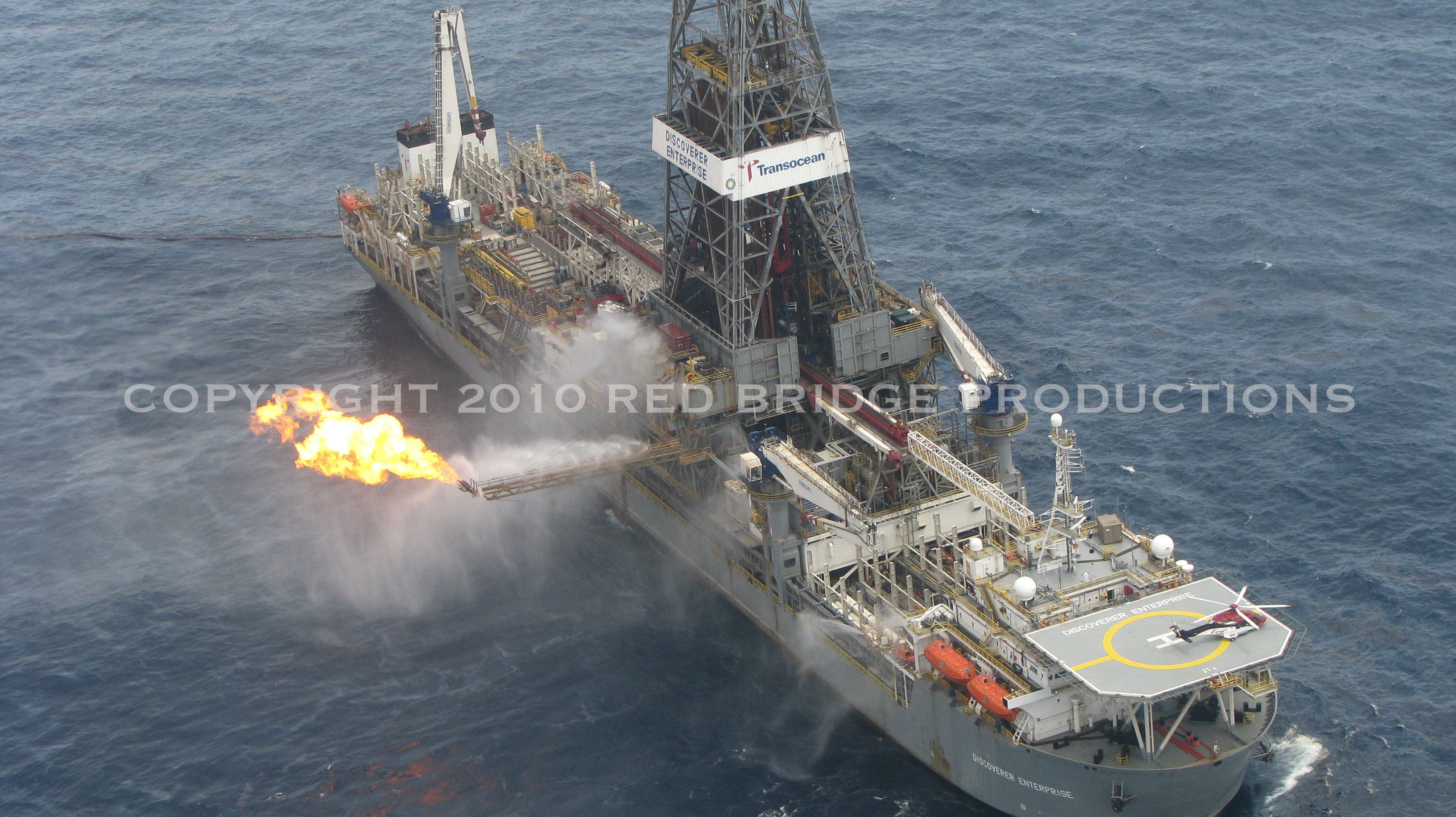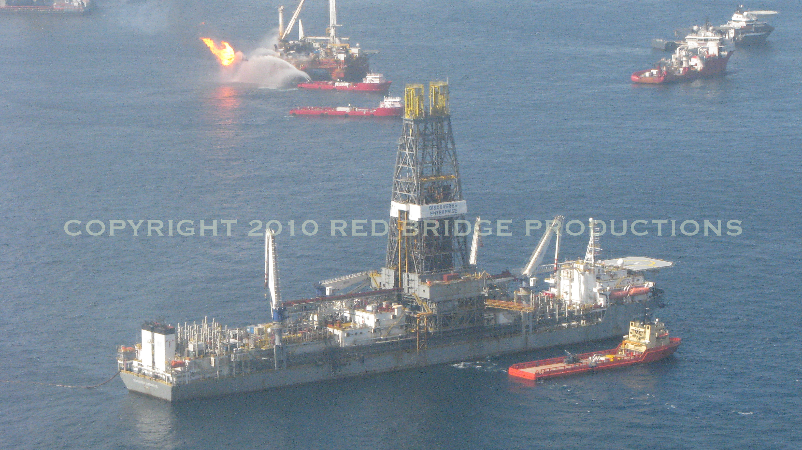 The Discoverer Enterprise over the spill site in the Gulf of Mexico