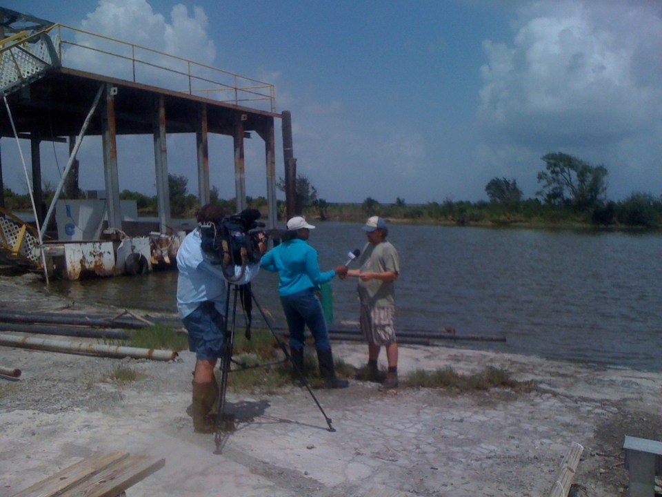 Fox-NO anchor Nancy Parker speaks with photographer Jerry Moran in Cocodrie, LaDiscoverer EnterpriseA large oil sheen can be seen near the spill site off the coast of Southern LouisianaA boat near the spill site kicks up a dark oily substance in its wakeNear Grand Isle, LaNear Grand Isle, LaNear Grand Isle, La